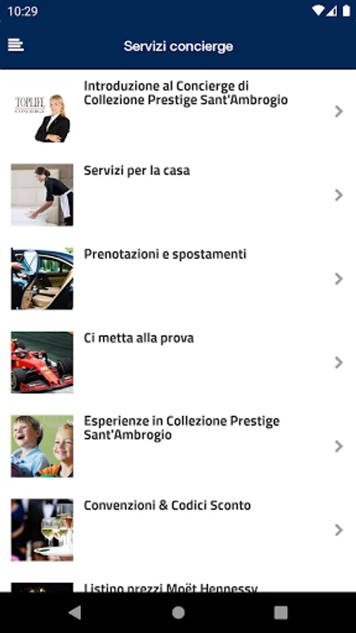 App to view services, activities and spaces at the Prestige Collection - Sant'Ambrogio in Milan, make reservations and contact the concierge.