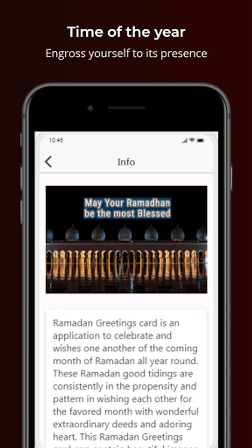 This Ramadan Greetings cards application is loaded up with different Ramadan images to be imparted to Muslim companions all throughout the world. The application is also attached with famous Ramadan quotes to be send along with your wishes during the Ramadan festival.