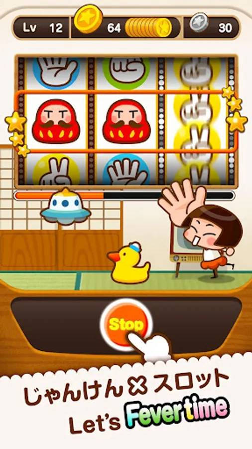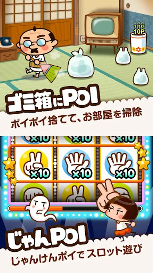 It is a game application where you can operate cute characters, clean your room cleanly, and play with the Janken slot!