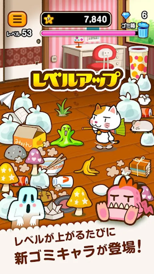 Level up with a lot of cleaning! New garbage will come out.