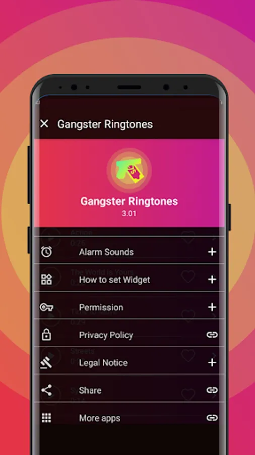 Set the widget button on your phone home screen and play the best gangster ringtones at the right moment, use these free mobile sounds to create gun sounds and impress friends, with this free ringtones app for Android.
