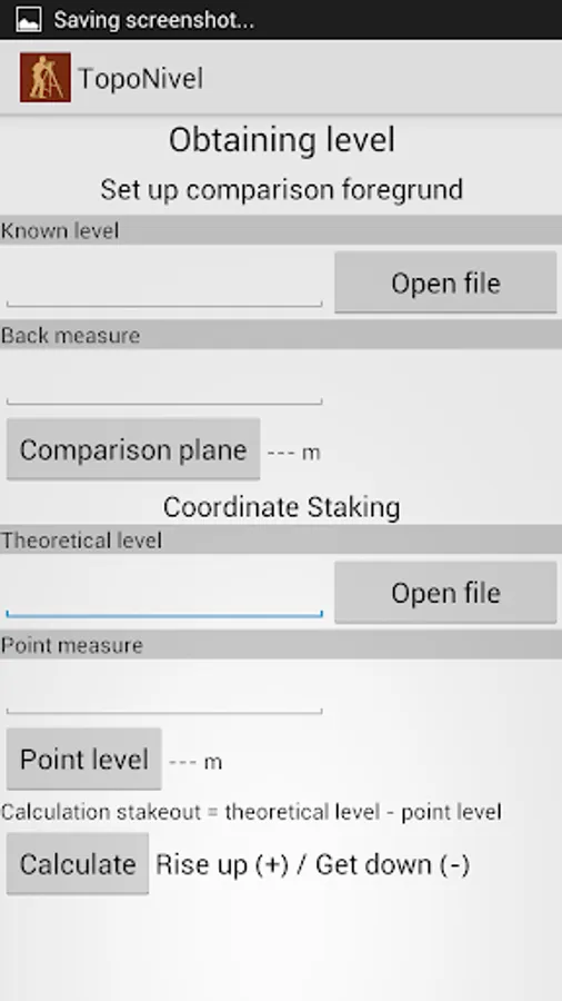 Points leveling tool: ideal for civil works. From a known height, we can get a comparison plane, and calculate leveling staking any point we need, without having to calculators, or accessories of any kind.