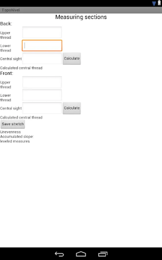 - Precise leveling: read the three threads, and comparison of the central wire read, with the central wire calculated by the program.