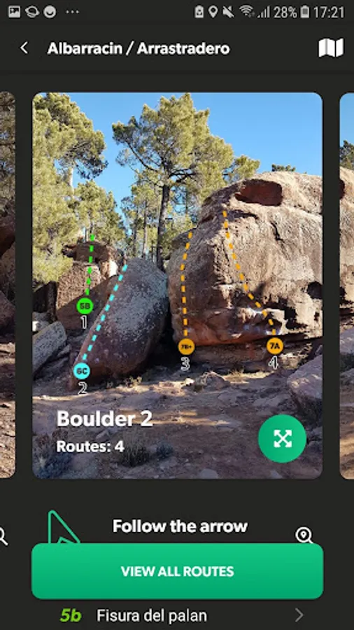 Finding your favorite crags and routes is also easy with Topo Guru. Our partners and crag-masters save the GPS coordinates for each photo and we can show you detailed information. Use our in-app compass to find your way through blocks and to see the distance from your destination.