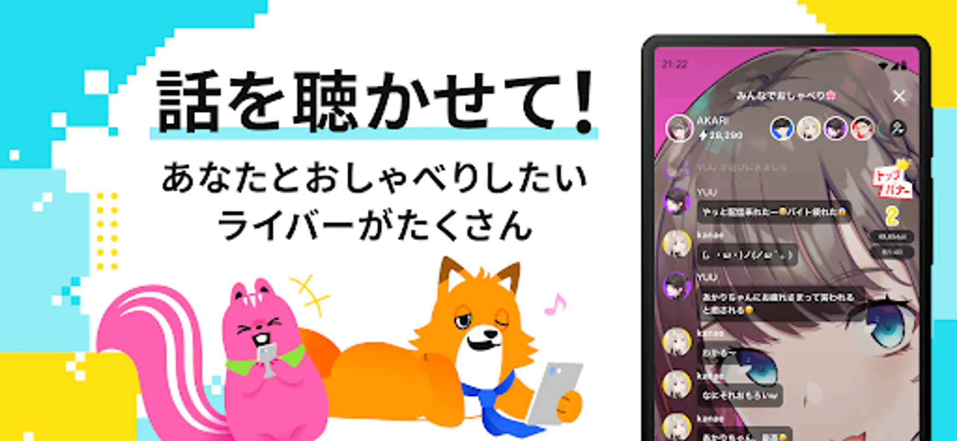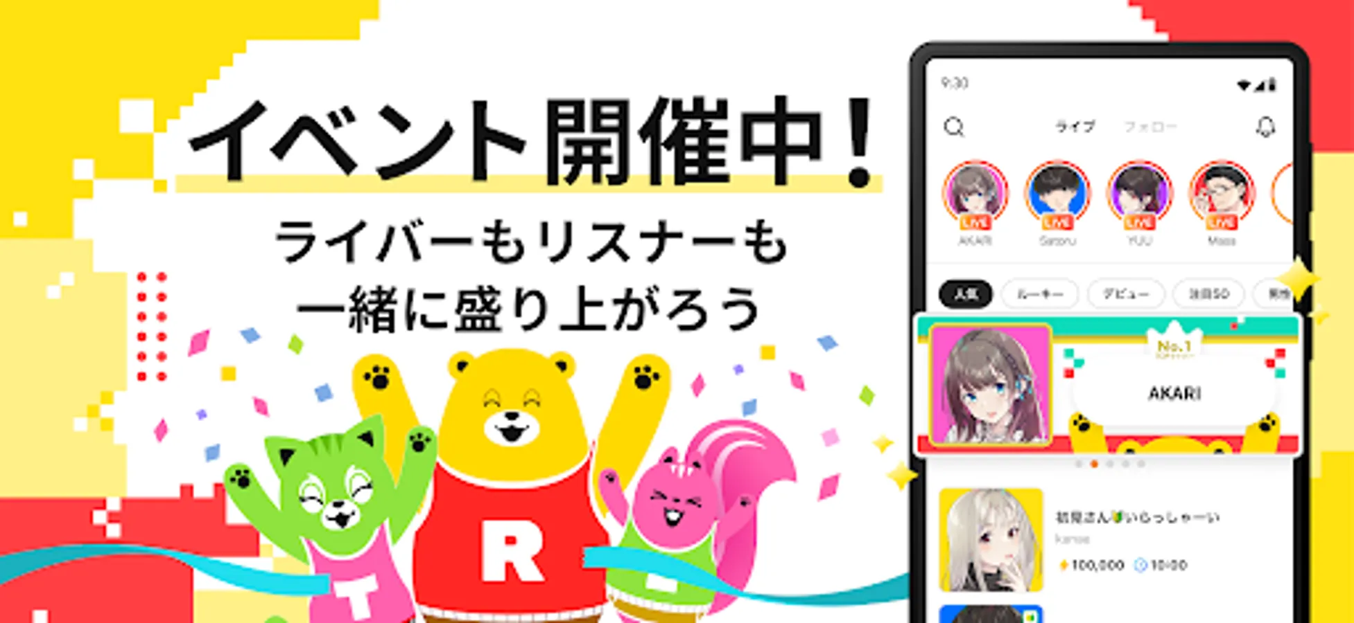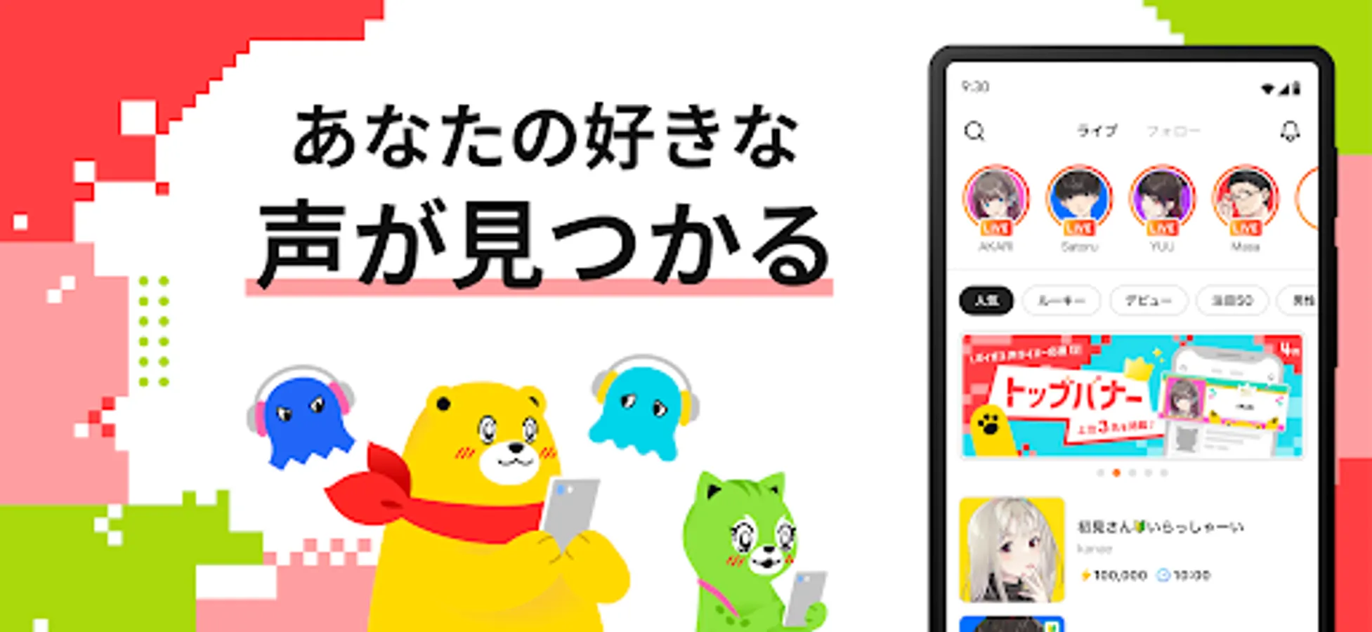 An audio live distribution app where everyone plays the leading role.