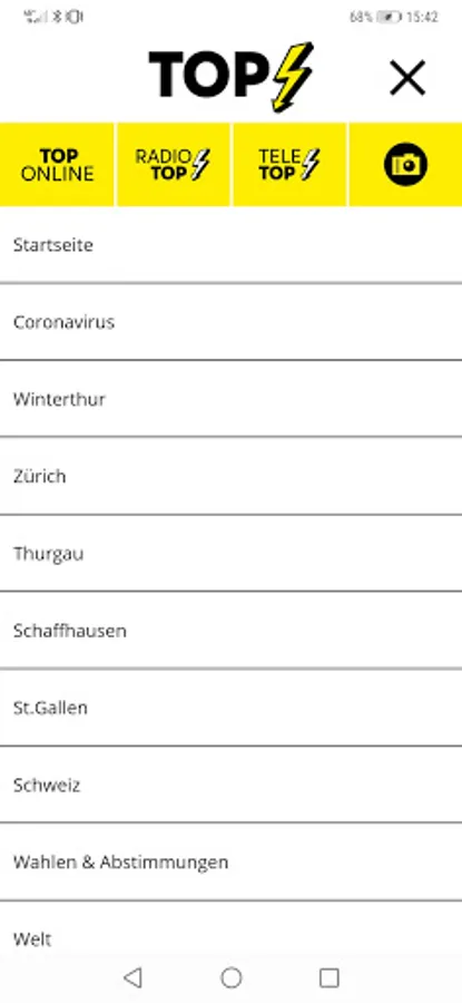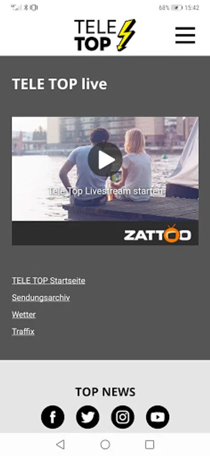 Thanks to the intuitive operation of the app, you can now get to the radio player even faster. Swipe once to the right and the radio player is already open. Swipe left once and you can send us your story, picture or video and become a TOP REPORTER. The live stream from TELE TOP is also easily accessible.