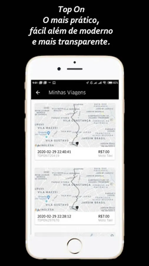 Upon arriving at the destination, the driver confirms the payment on the app. The amounts received in cash are discounted directly in the portfolio.