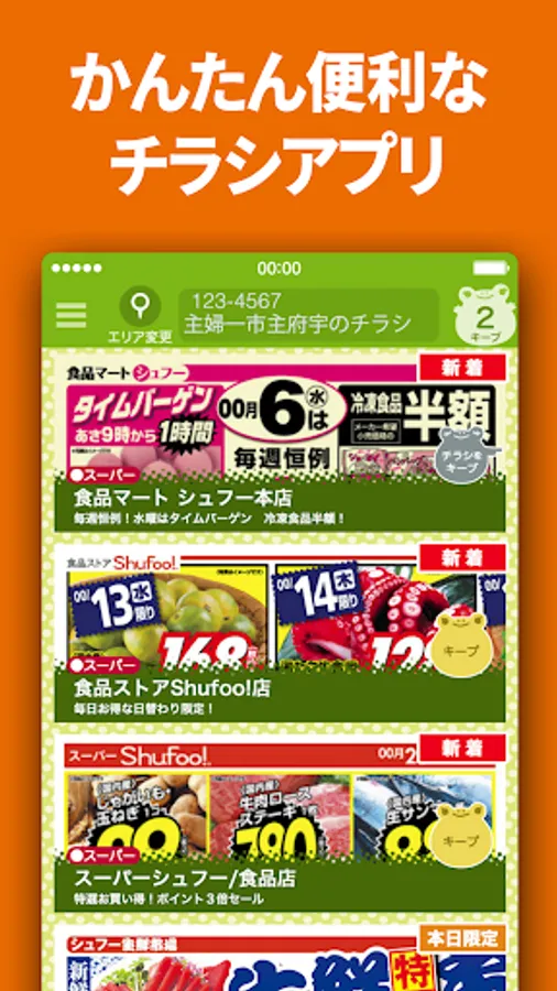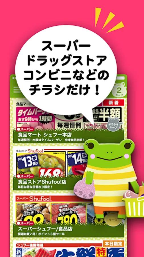 Conveniently unlimited access to leaflets for daily meals such as supermarkets, drugstores, and convenience stores. This is a simple leaflet application provided by Shufoo!, one of Japan's largest electronic leaflet services.