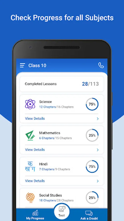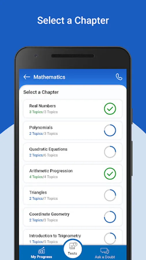 With better clarity on the progress, students can embark on a journey of more fruitful preparation. The My Progress tab in the TopperLearning App provides a complete overview of the student’s progress in every subject.