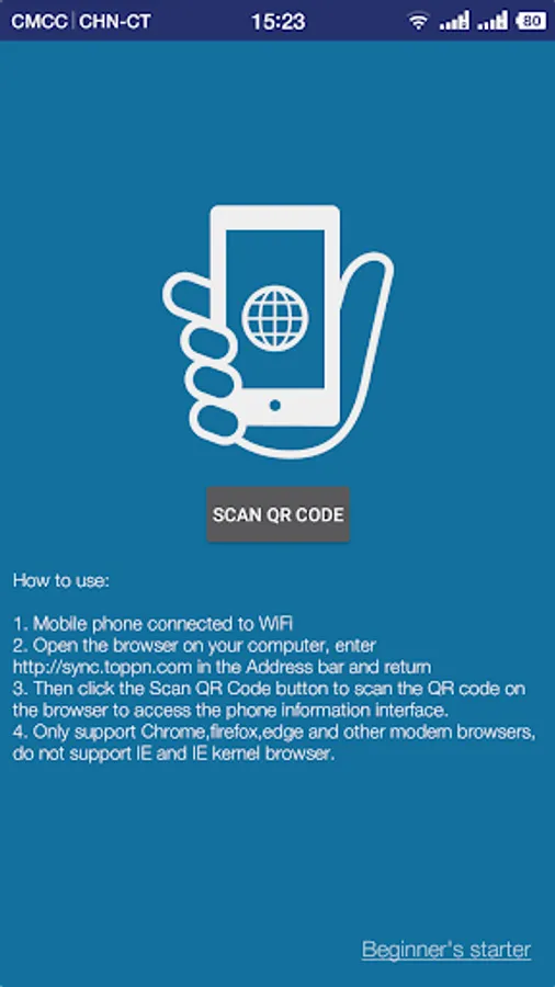 3. Then click the Scan QR Code button to scan the QR code on the browser to access the phone information interface.
