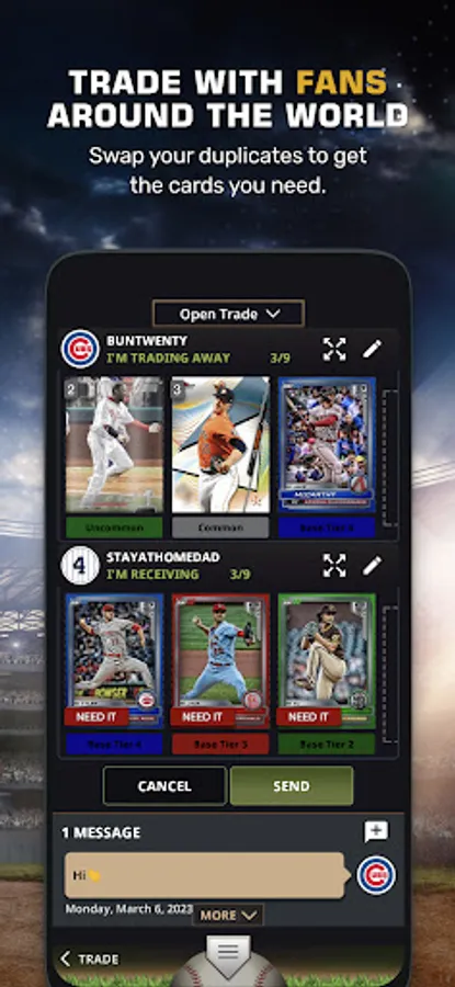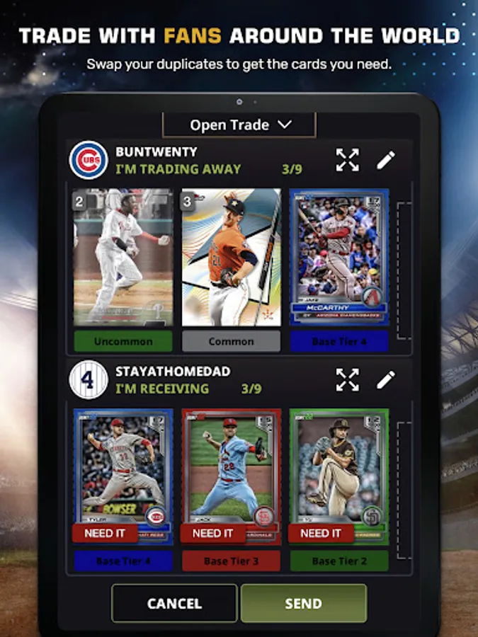 Topps® BUNT® MLB Card Trader is the officially licensed digital collectibles app of Major League Baseball and MLB Players, Inc! Join a passionate community of baseball fans from around the world that enjoy collecting & trading digital Topps baseball cards and bringing their collections to life with fun, interactive in-app features! Set lineups using digital Topps baseball cards in your collection that score in real-time scoring fantasy baseball contests! Topps BUNT is your go to digital trading card app when BIG baseball plays happen around major league baseball or when baseball milestones are achieved and memorialized as Topps digital trading cards.