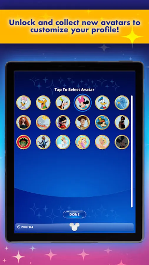 • Choose and unlock Disney character profile avatars!