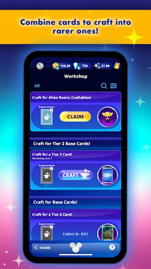 • Combine Disney Collect! cards to craft into rarer ones!
