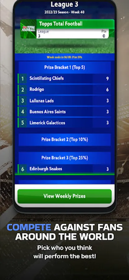 TAKE ON THE WORLD. Every week, Topps Total Football players around the world will compete in our global league system to prove who is the best card game player and destined for the very top of the Topps Total Football table!