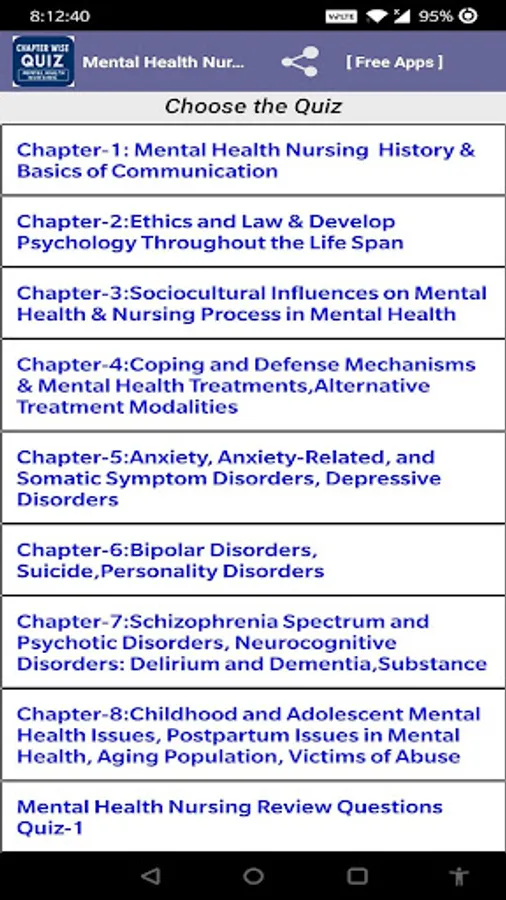 Mental Health Nursing Chapter Wise Quiz App Features: