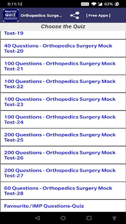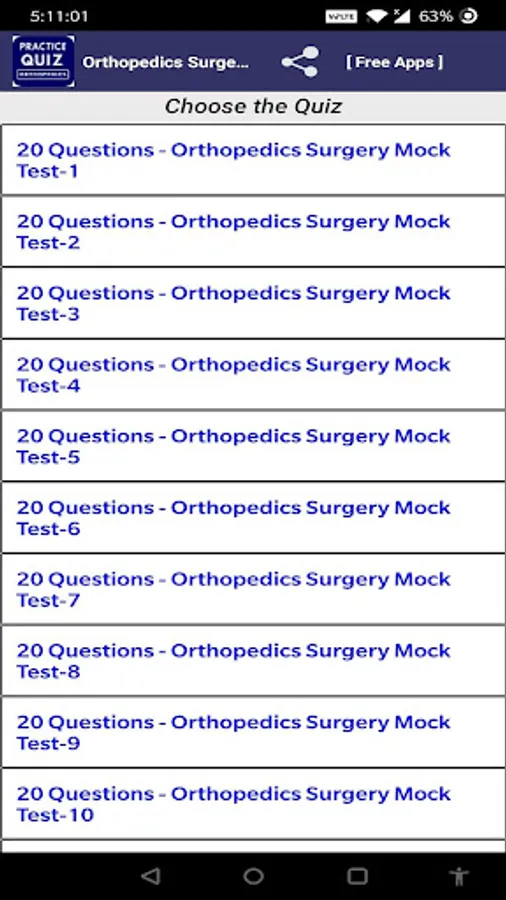 Orthopedics Surgery Mock Test free app help to prepare Orthopedics Surgery Exam. In this Orthopedics Surgery Mock Test free App having more than 2000+ Orthopedics Surgery Questions for best Orthopedics Surgery Exam Preparation.