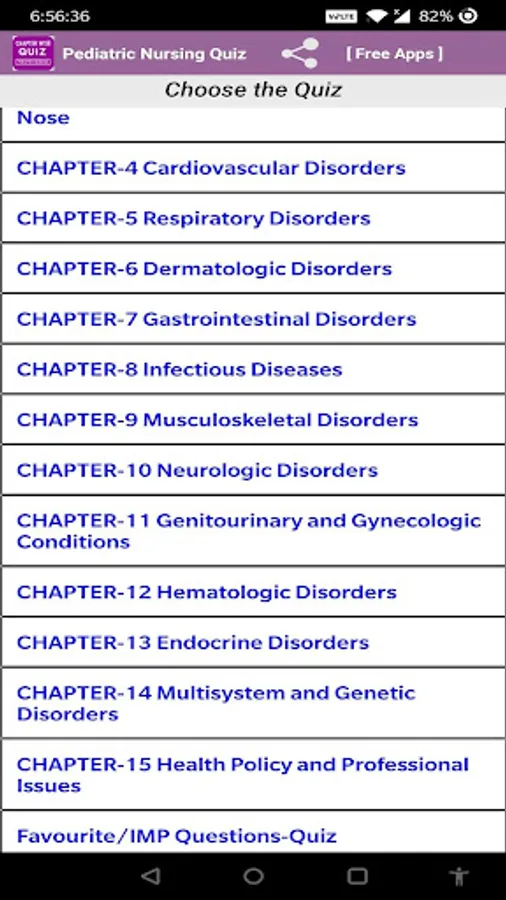 Pediatric Nurse Practitioner Chapter Wise Quiz App Features: