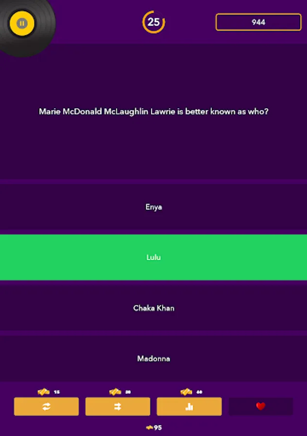 This game adapts to your knowledge and will become increasingly challenging with questions from top artists like Rihanna, Sia, Lady Gaga, Eminem, Ed Sheeran and popular bands like Coldplay, U2, One Direction, Radiohead and much, much more!