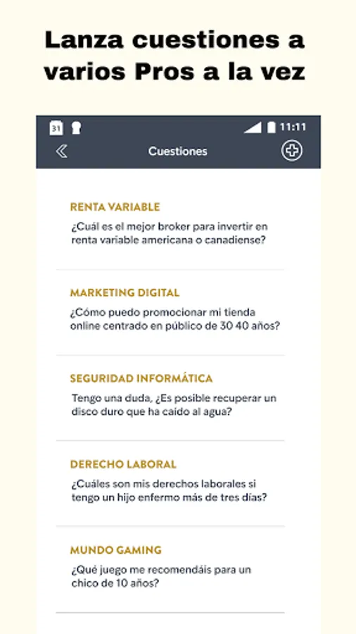 Busco pro. Descubre a nuestros especialistas en la temática que necesites. Encuentra la información que necesitas de modo directo y rápido dirigiéndote a profesionales de la materia. Resuelve tus dudas con el especialista más apropiado.