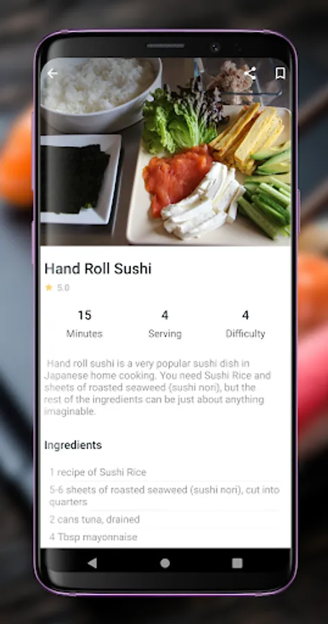 Are you love with japanese food. Now, you are make japanese food with our japanese recipes food app. Japanese recipe is traditional and regional food from Japan. This provide food recipese such as onigiri, udon, ramen, bento, sobam gyudon, omurice, tofu, umani, tempura, sushi, kimchi, and many other recipes. All recipes are accompanied by time serving, ingredient, clear step by step, and video tutorial.