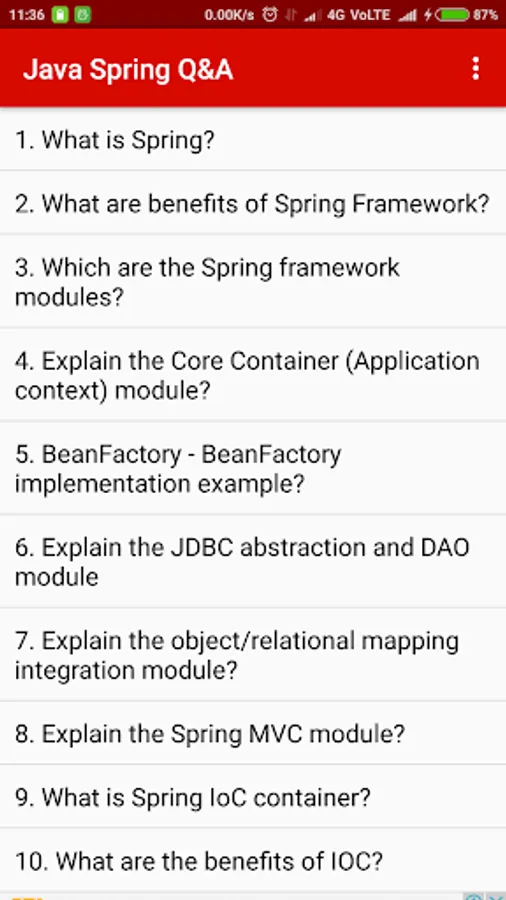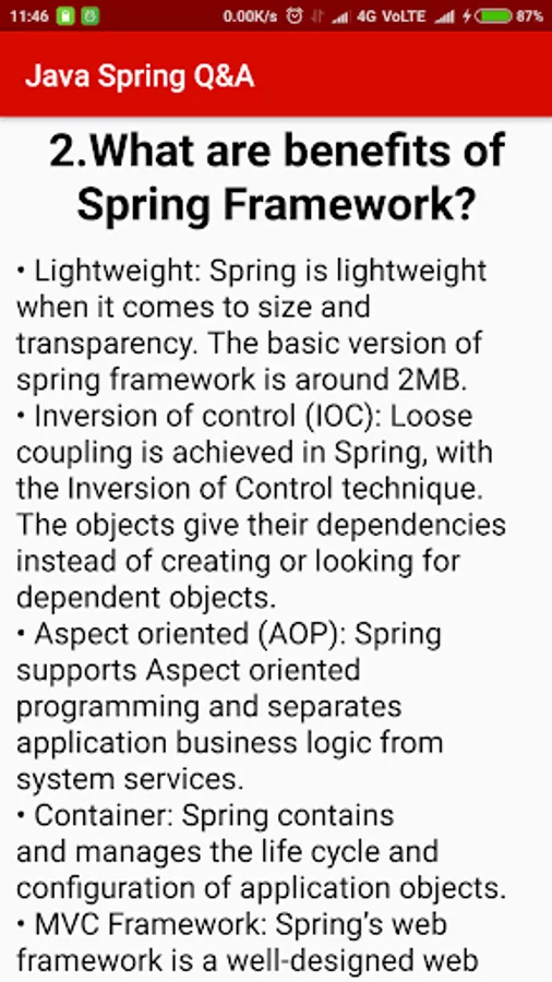 This App have covered around 50+ Java Spring interview questions and it answers.