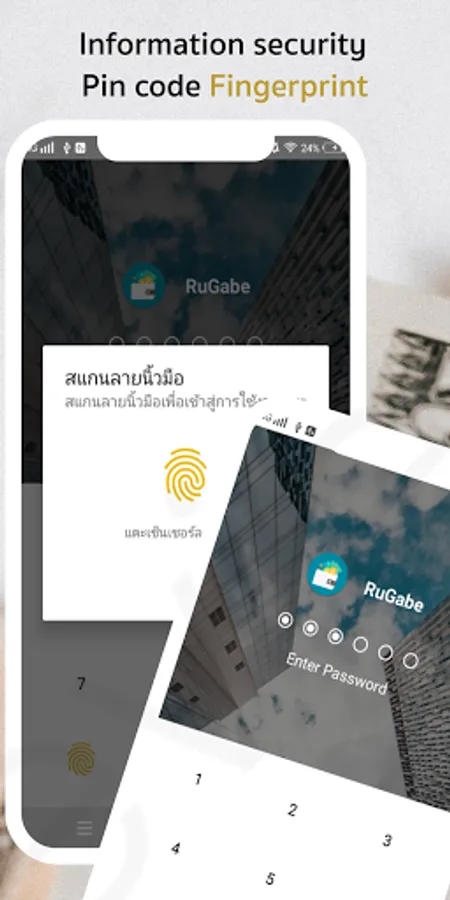 - Able to set security for accessing the app by being a Pin code (number) and Fingerprint (a fingerprint scan)