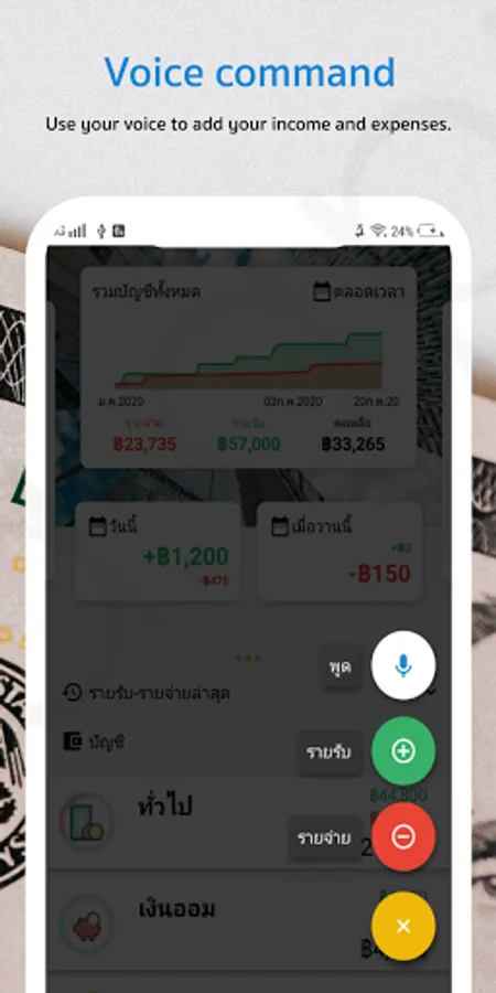 This application is for Thai people, which was developed especially for Thai people. Can be used conveniently, quickly and easily to understand. Including savings, debt, spending and income, and a very detailed report summary. That comes out in the form of a graph that is divided into categories for easy viewing You can change and edit the category as you like. Along with many icons to choose from You can also export revenues-expenses as Excel and PDF files.