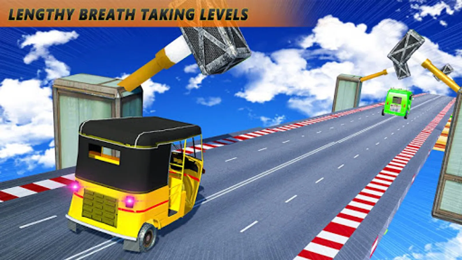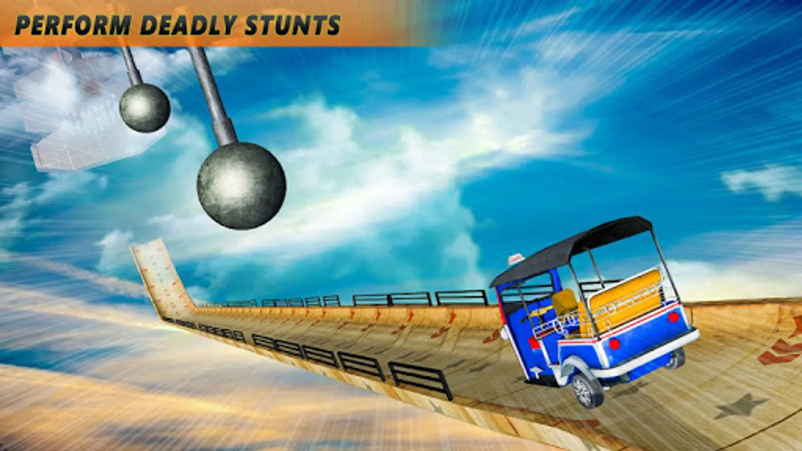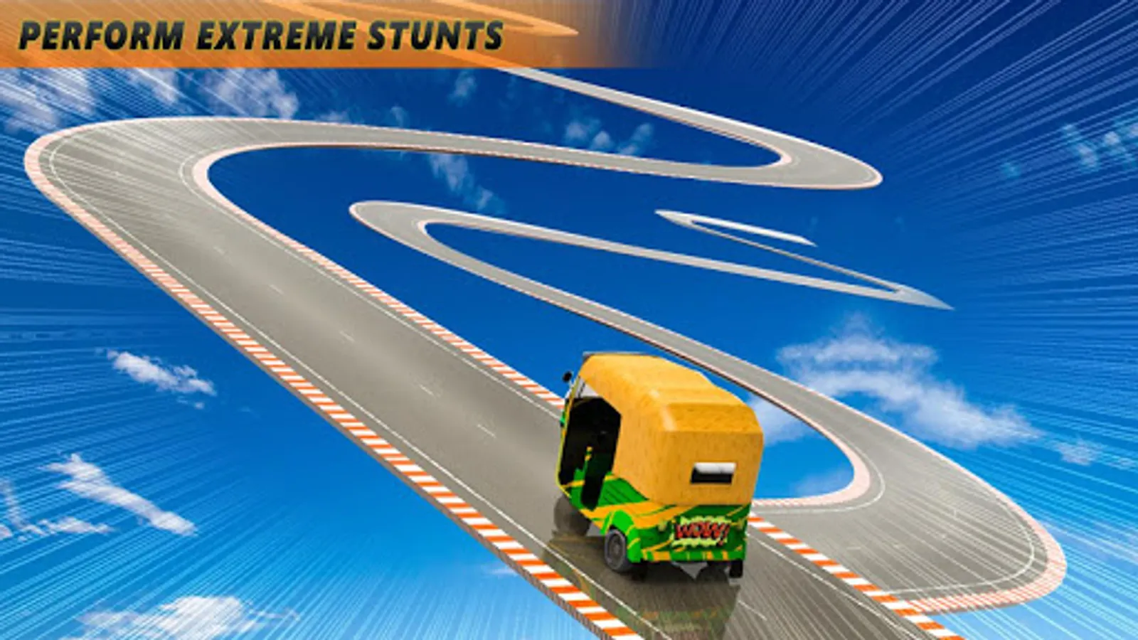 Get ready for ๐บ tuk tuk auto rickshaw drive on tuk tuk racing stunts and mega ramps impossible track stunts. Experience the fun of extreme stunt driving on mega ramps and impossible stunt tracks with modern tuk tuk auto rickshaws. Show your all real tuk tuk games driving experience on toughest mega ramps and spiral pipes over the big city and intensive clouds in this 2020 new game. Enjoy the craziest tuk tuk auto rickshaw stunt driving on GT racing stunts. Start your tuk tuk driving challenge and proof yourself the best chingchi driver. Boost your tuk tuk auto rickshaw on impossible tracks and GT stunts to make a high roof jumps. Become a tuk tuk master driver by keeping your modern tuk tuk rickshaw safe and stable on tricky ramp stunts and GT stunts.