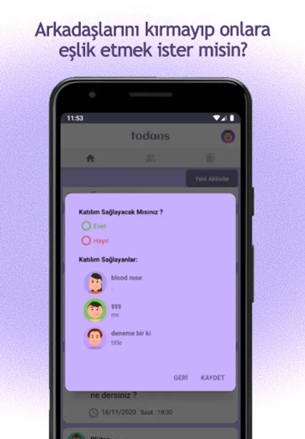 • Only the creator can delete the activity. To delete; The person who created the activity "Will you participate?" You can delete by saying no in the section.