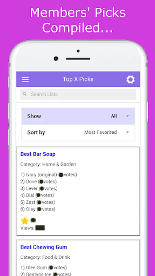 Top X Picks is a compilation of everyone's best, worst, and "everything in between" picks, to form the master Top X Picks list on a subject. Each member can create a new list for others to add their input to, or choose to add their picks to an already existing list - up to 10 picks per member per list. Top X Picks takes into account where you put a pick on your list - #1 being at the top of the list and #10 being at the bottom of your list - to calculate the master Top X Picks list for the subject.