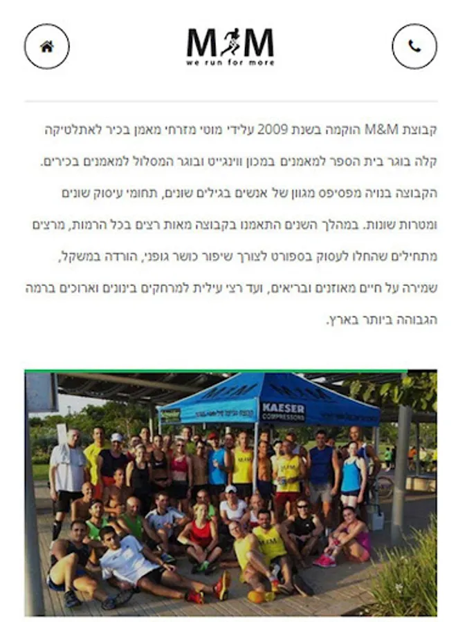 תחשבו כמה זה כיף לבוא למקום בו כולם אוהבים את אותו הדבר. כולם אוהבים לרוץ בקבוצת M&M המכנה המשותף כבר קיים. כל רץ חדש מוצא את מקומו כחלק מהקבוצה כבר באימון הראשון. הקשר האישי נוצר מהר מאוד והקשרים הנרקמים בין הרצים הוא בלתי נמנע.