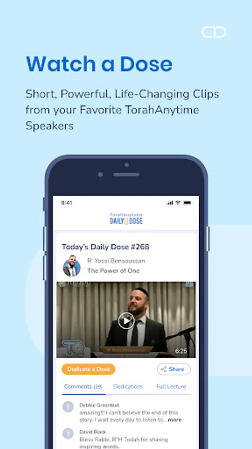 The TorahAnytime Daily Dose App is finally here. Now you have instant access to every single Dose at your fingertips. Be inspired and uplifted with amazing TorahAnytime speakers. Want to watch the full class that the Dose was taken from? A simple tap can get you hooked with inspirational stories and practical takeaway messages.