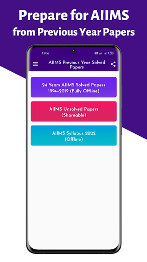 Aspirants who are preparing for the AIIMS can read and practice the AIIMS 26 Previous Year Question Papers 1994-2019 from this app.