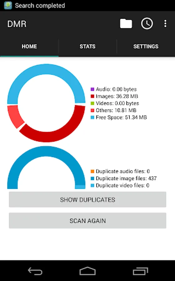 The application removes all duplicate media (audio, images and videos) files present in your internal (phone memory) and external storage (SD card).