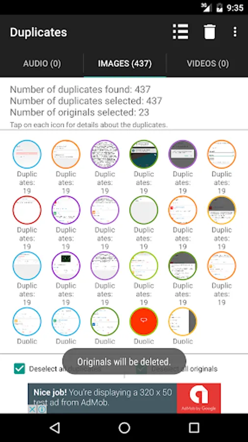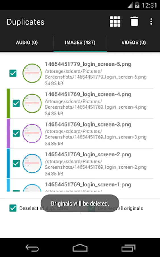 2. Each individual file that has duplicates can be marked for deletion including the original file. Verify that the selected files are the ones you definitely want to remove because they cannot be retrieved once deleted.