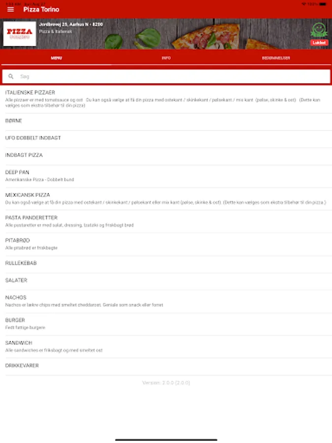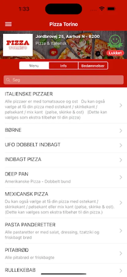 Bestil pizza, burger, pasta, m.m. med få tryk, nemt og hurtigt!