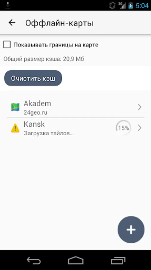 - The list of offline maps available opportunities to create new jobs Named to download offline maps with a forecast of their size, run the download, delete parts of the job cards from a cache (temporary memory clearing) and the complete removal of the job.