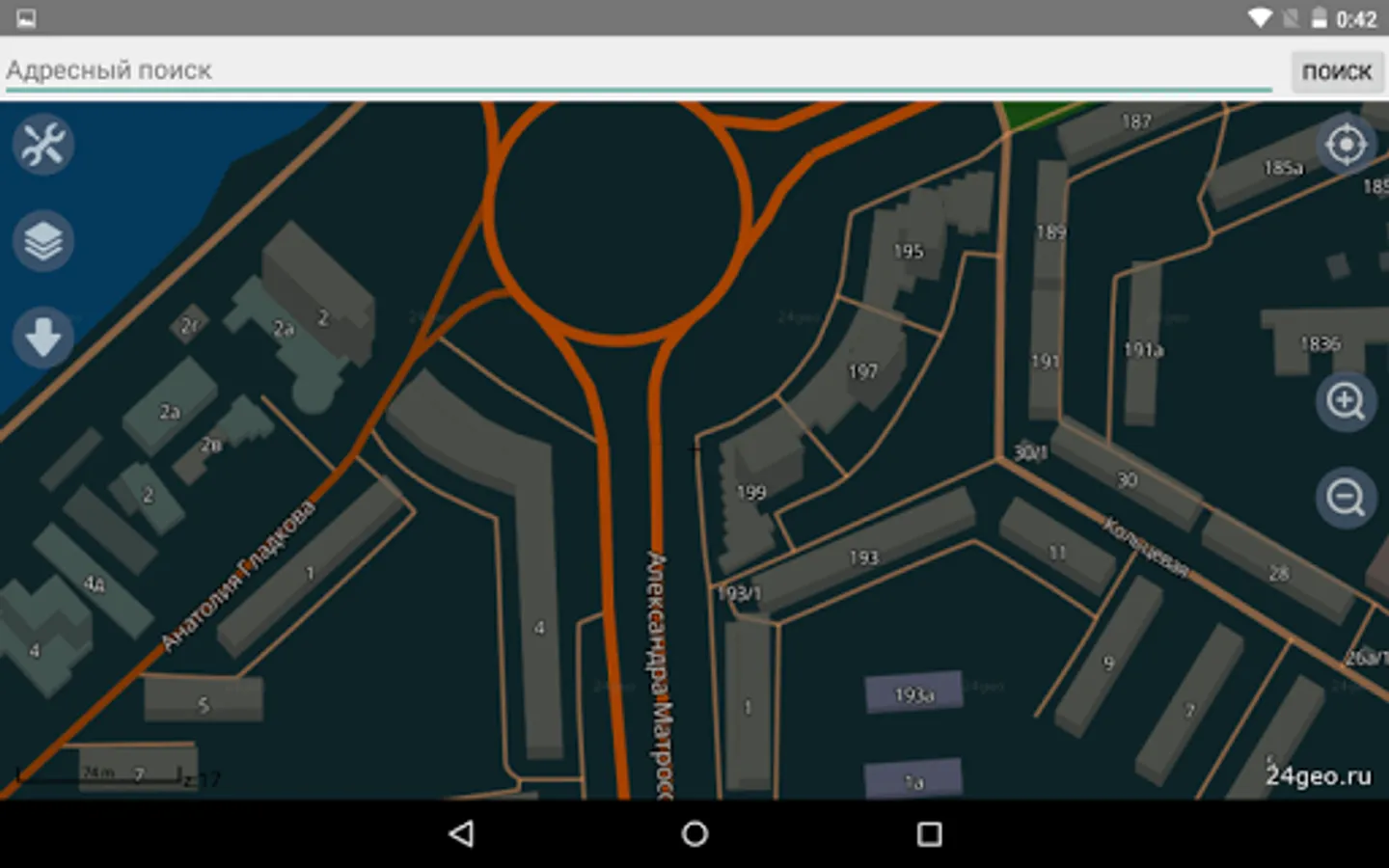 - Works Search user's current location in the presence of GPS / GLONASS;