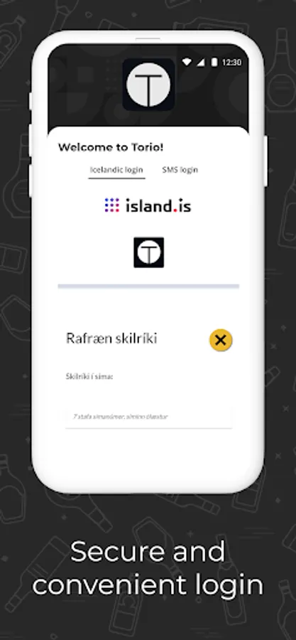 The app is available in English and it has both dark and light version. Users can register/login using an SMS number or Icelandic digital certificates.
