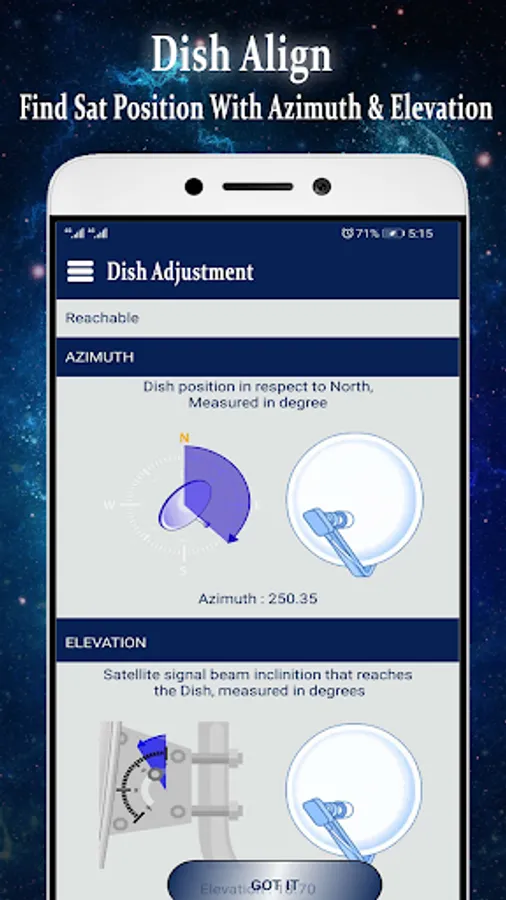 Installation of dish is now very easy. This Satellite Locator Dish Aligner & Dish Pointer is a free satelite finder app with GPS compass. If you want to find 360 satellite like tohr so just install this Sat Finder Dish Pointer Installation & Alignment app.