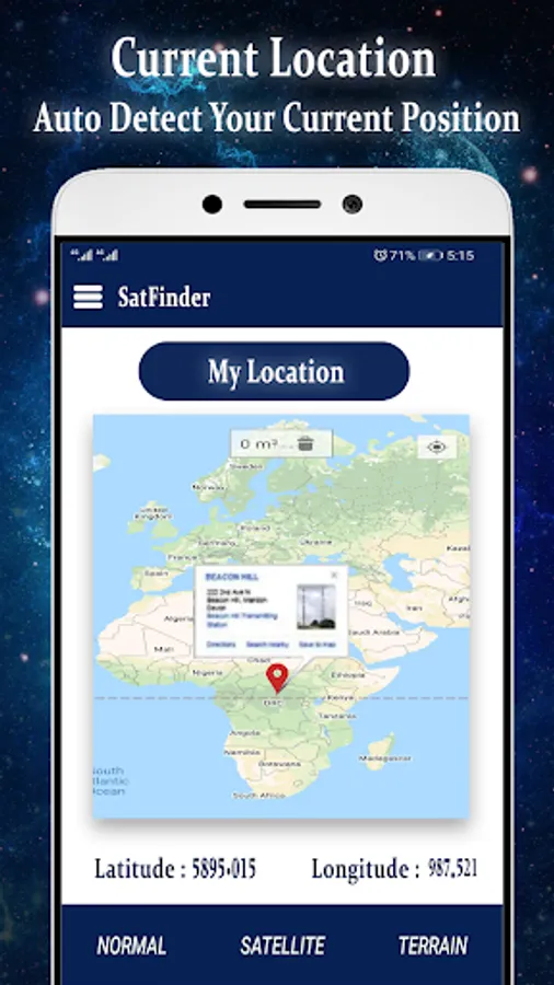 Current location: Satfinder Enigma Signal Meter & Area Calculator app can allow you to find current location. This feature helps you in satellite setting like free satellite se with amazing satellite setup.