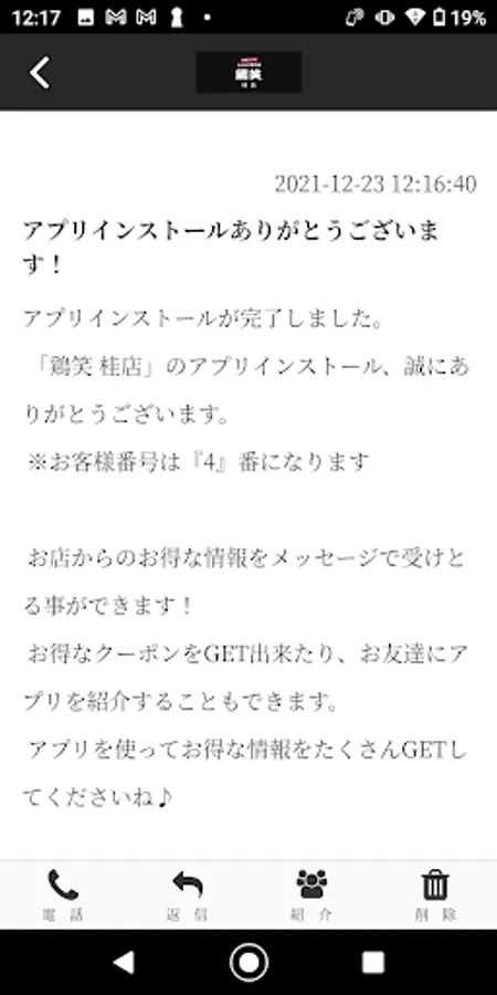You can introduce the Torisho Katsura store app to your friends through SNS.