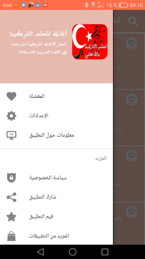Turkish language learning application with songs is a comprehensive application that contains several sections and several written songs different according to each case all this with pictures to facilitate learning and without the Internet also this application also contains simple and easy new ways to facilitate communication in addition to pronunciation of words.