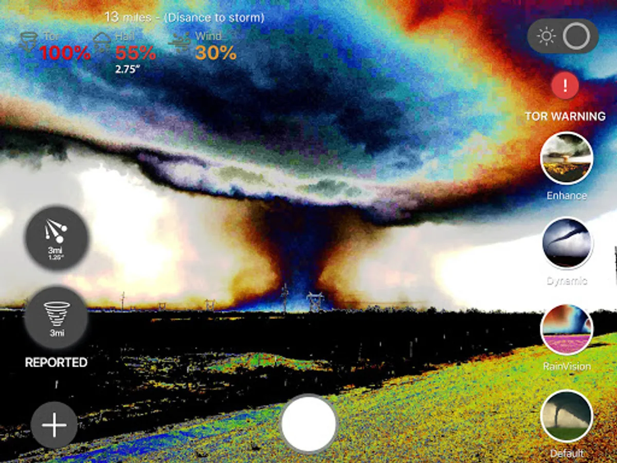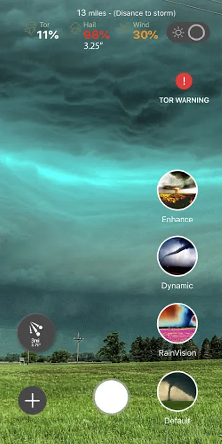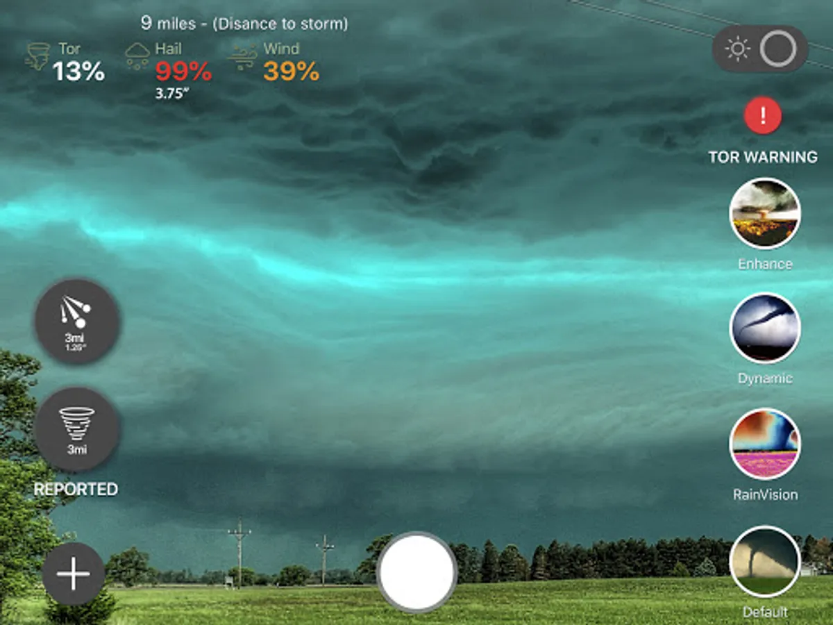 ⚡ Augmented Reality displays chance of tornado, hail (and size) and wind when looking at any storm within 45 miles.