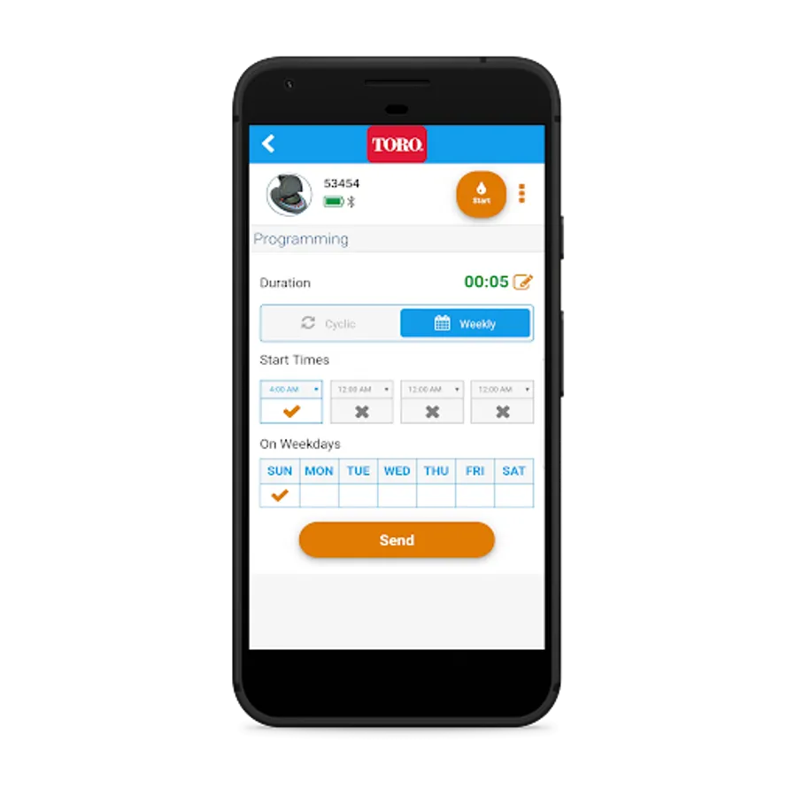 The App operates Toro Bluetooth enabled controllers, models 9001BT.