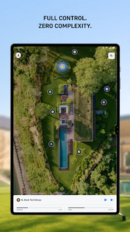 • Visual zone control. Tap on a map to select and control zones, with real images of your property.