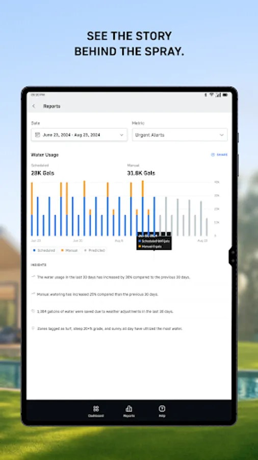 • Smarter watering, healthier landscapes. Use real-time data and usage insights to water exactly what’s needed — and nothing more.