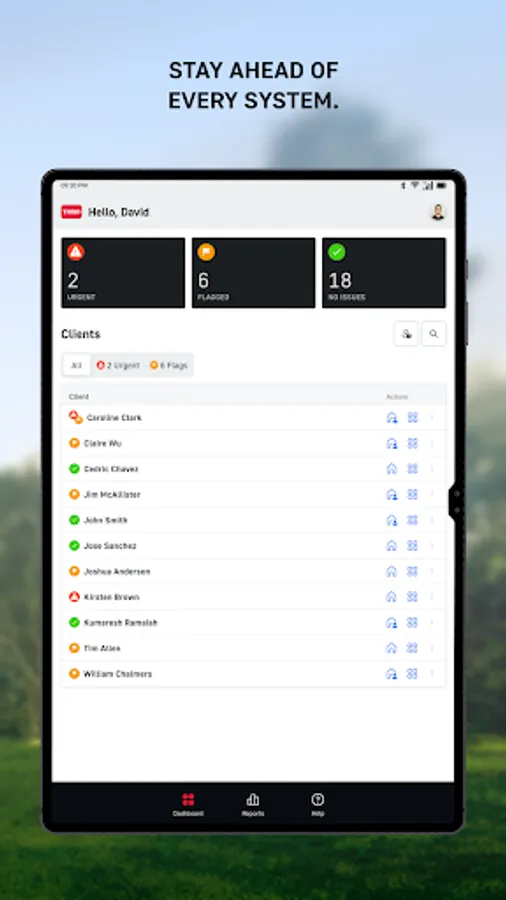 • Manage at scale. Monitor system status, usage, and alerts across all clients — in real-time — from one dashboard.