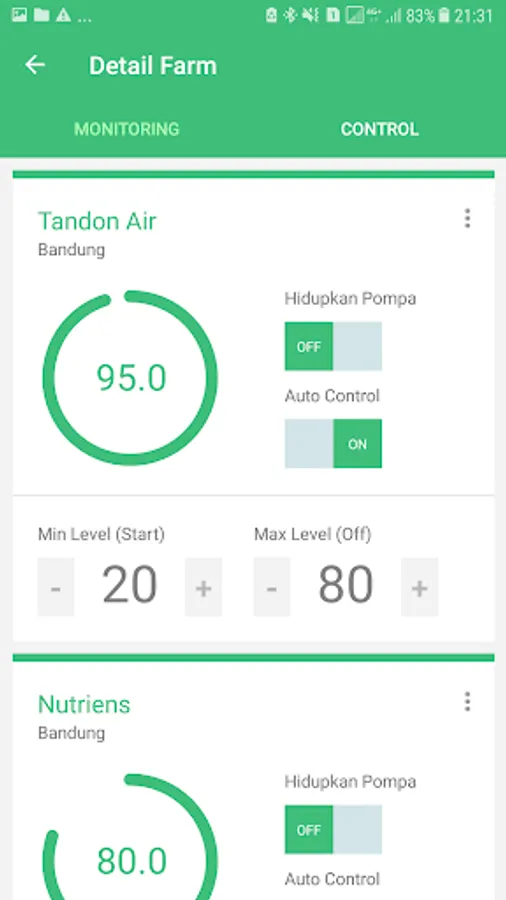 An application that is connected to the IoT device in a hydroponic garden to monitor and control plant conditions for farming more effectively and efficiently