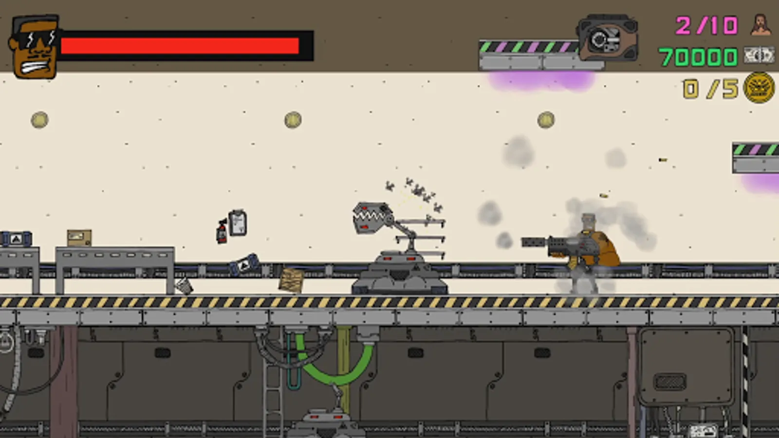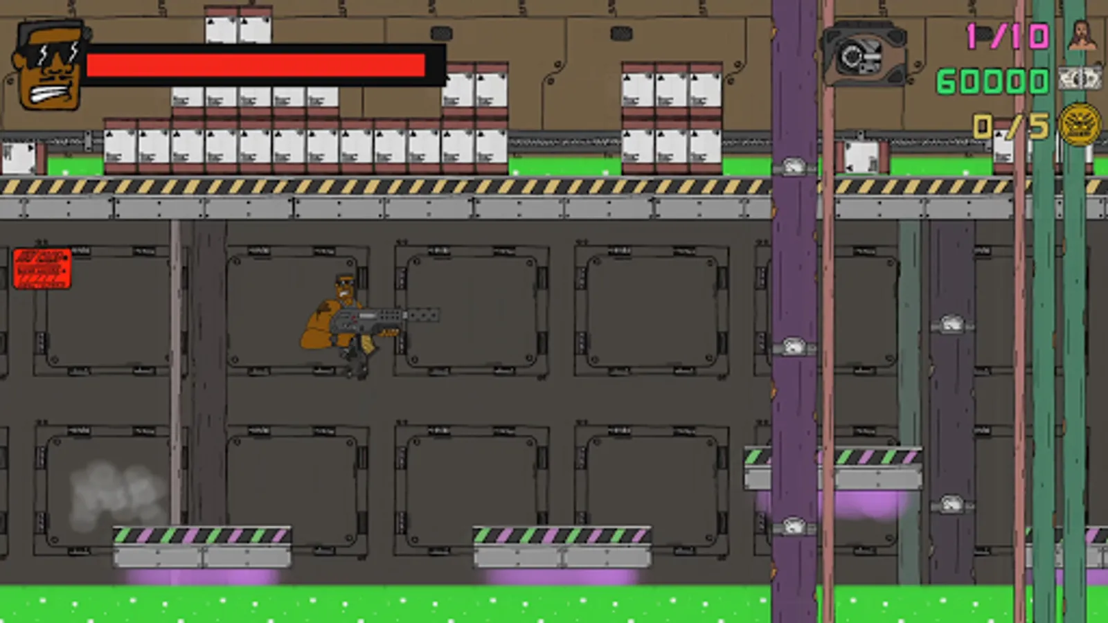 It's been weeks after Blambo Jones took to the streets to fight the forces of the Illuminati. Now he has found out that they have been building robots. Take role as Blambo to infiltrate the Illuminati Robot Factory to destroy the robots and save more babes from the evil forces of the Illuminati!